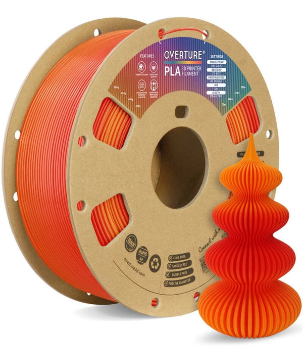 Overture filaments are compatible with most hobbyist, enthusiast and industrial 3D printers supporting 1.75 mm PLA filament. Explore your creative side with our extensive selection of vibrant colors, ensuring a spectrum of possibilities for your unique creationsr models, prototypes, miniatures, or functional parts to life